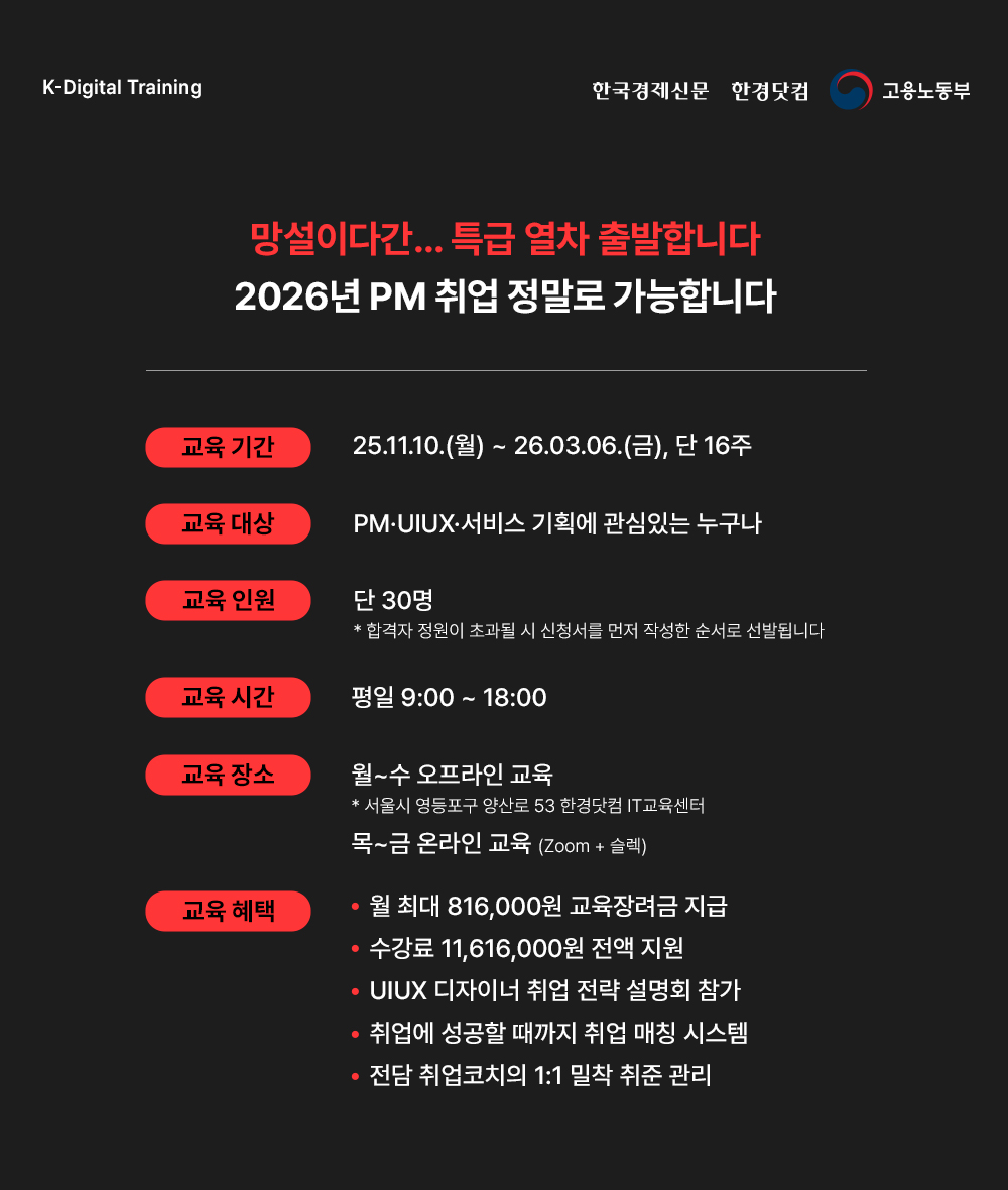 한경닷컴과 함께하는 ‘PM (UIUX & 서비스 기획)’
