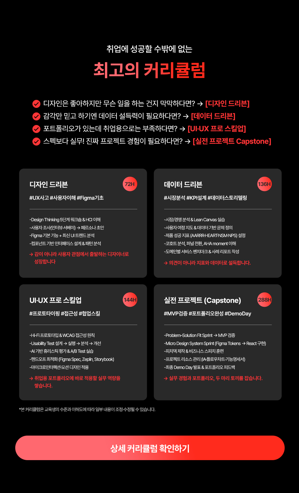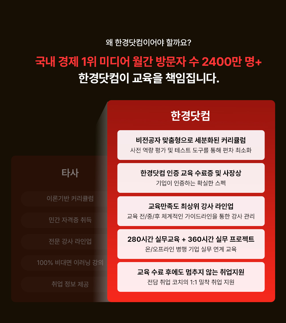- 현업 멘토 피드백 & 전담 코치의 1:1 취업 컨설팅