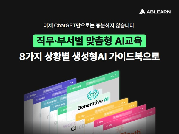 이에 AI 기업교육 전문회사인 ‘에이블런’(대표 박진아)이 조직 내 직무별 생성형AI 교육을 고민하는 HRD 담당자들을 위하여 직무별로 꼭 맞는 생성형AI 툴을 찾아 교육을 설계할 수 있도록 ‘상황별 생성형AI 툴 가이드북’을 무료로 배포한다고 밝혔다.