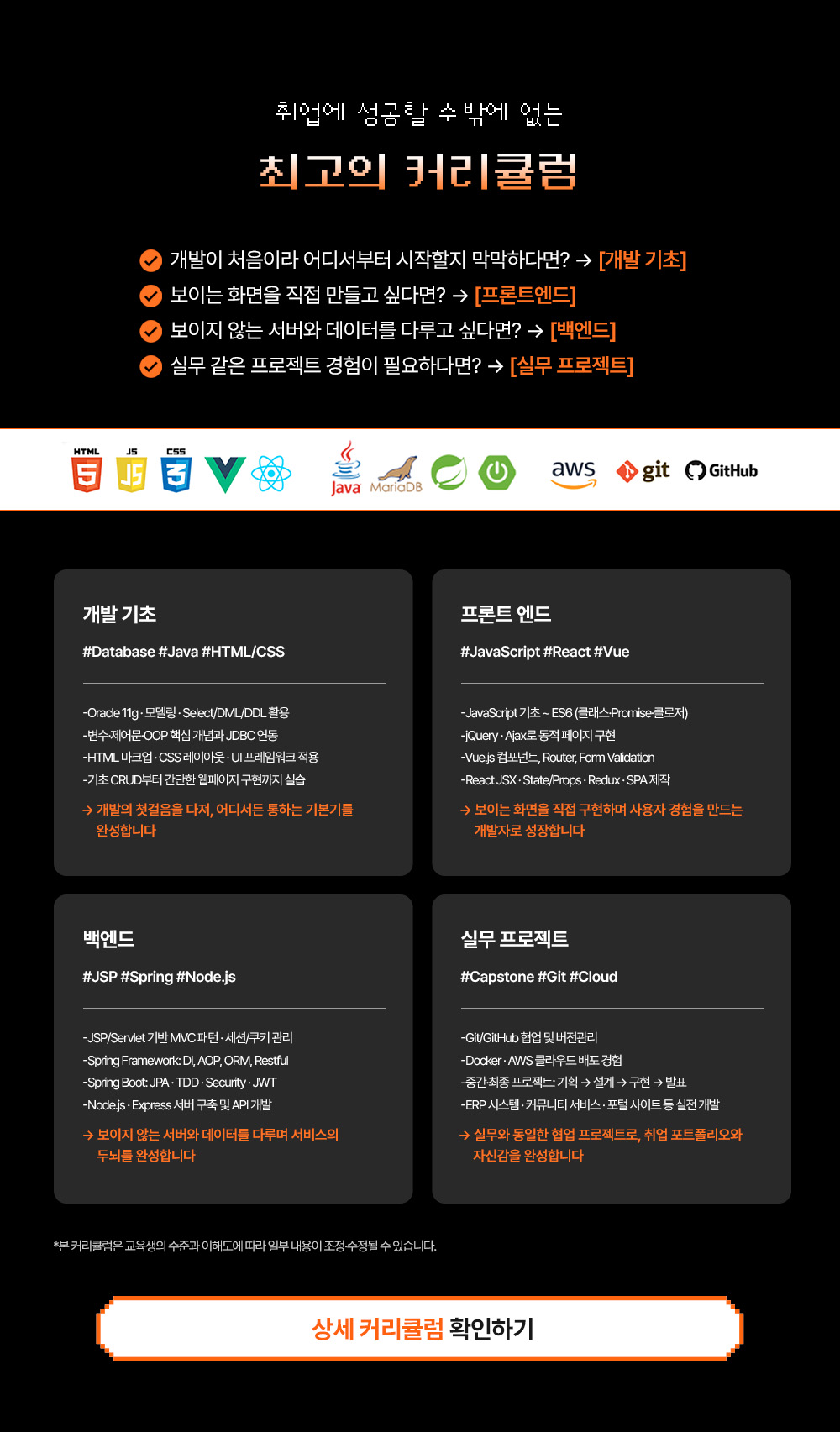 - Database·Java·Spring·React·Vue.js 풀스택 커리큘럼