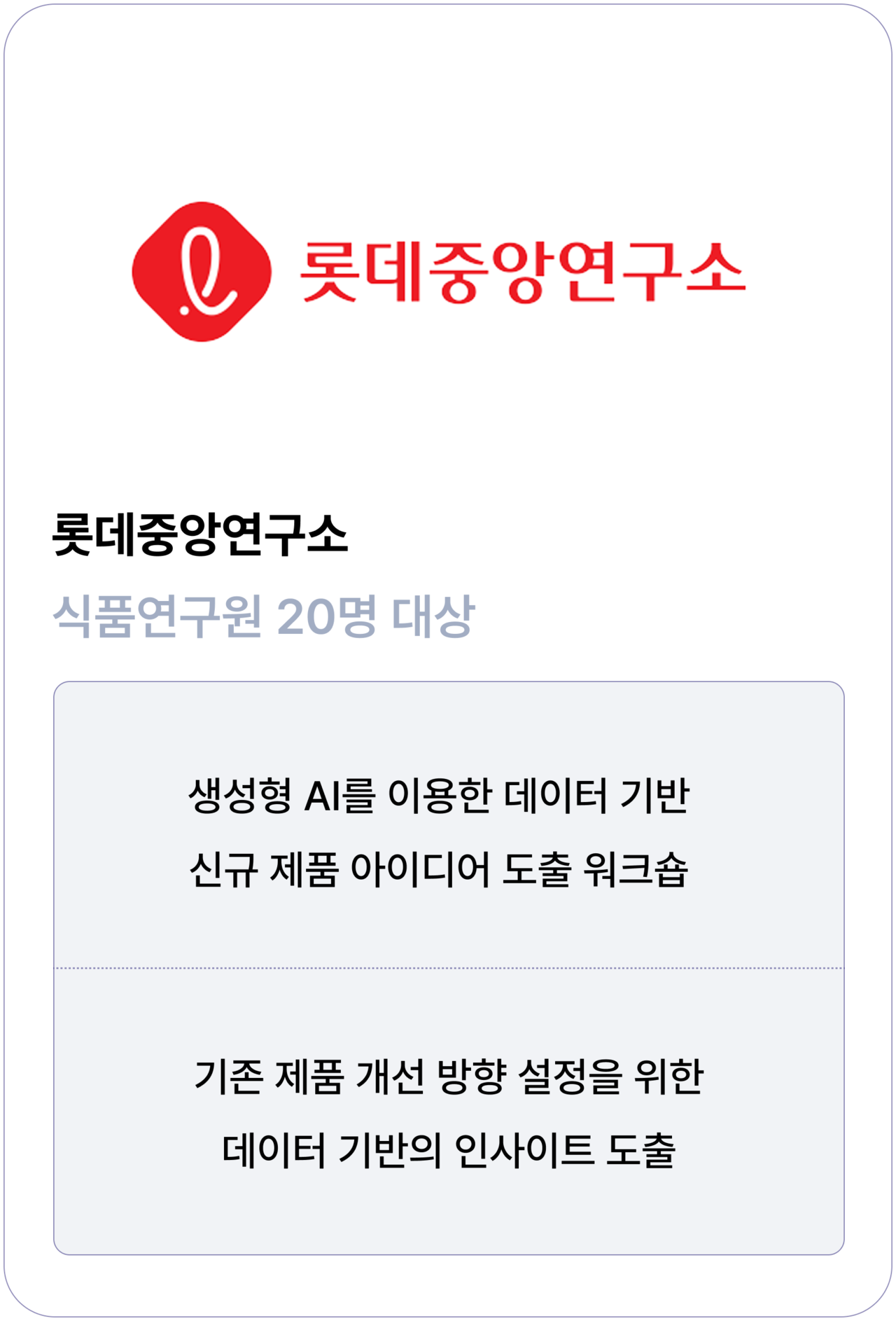 ❹ 실무 적용 중심 확산 | 교육 후 실습 결과물 공유, 팀별 확산 활동 지원까지교육을 일회성으로 끝내지 않습니다. |