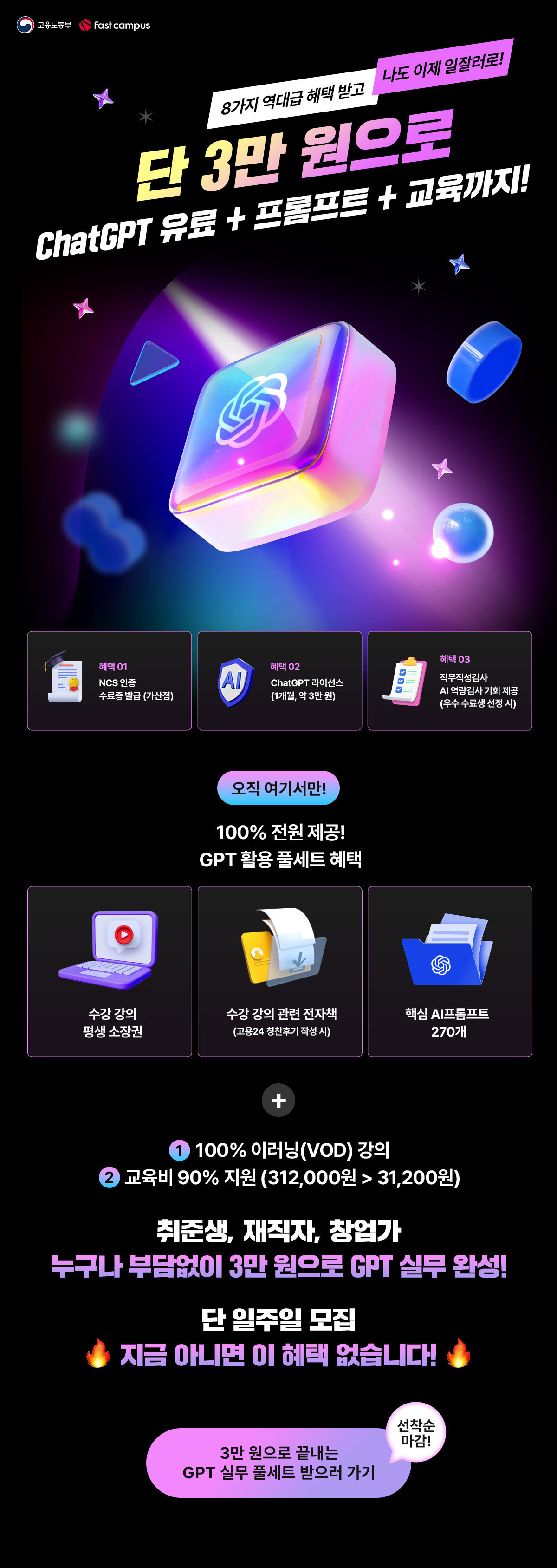 - ChatGPT 유료 버전 1개월 구독료 지원 (약 3만 원 상당)