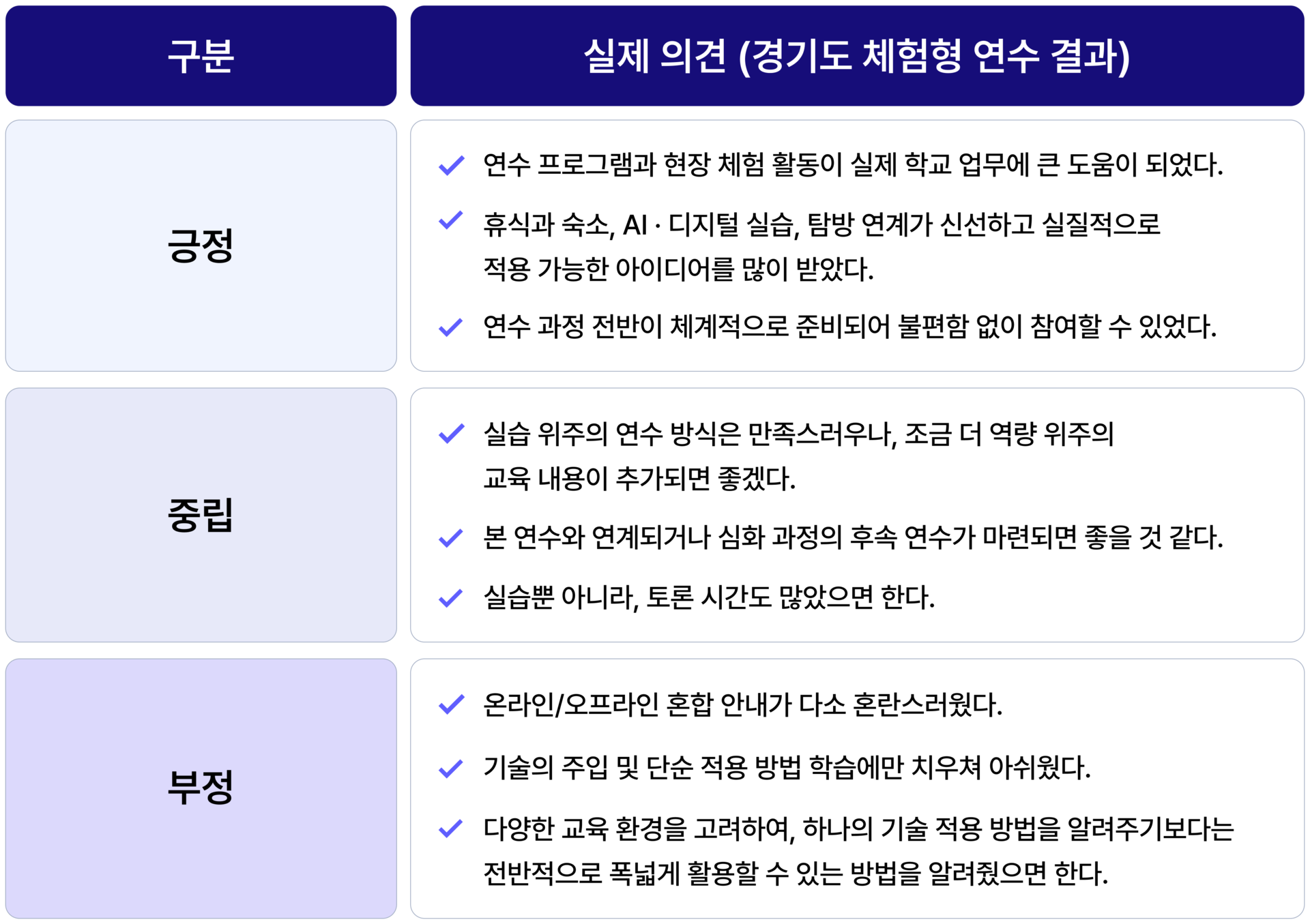 교원의 실제 니즈는 단순 반복이 아닌 자율성 및 전문성을 고도화할 수 있는 방식의 AI 역량 강화 연수를 요구