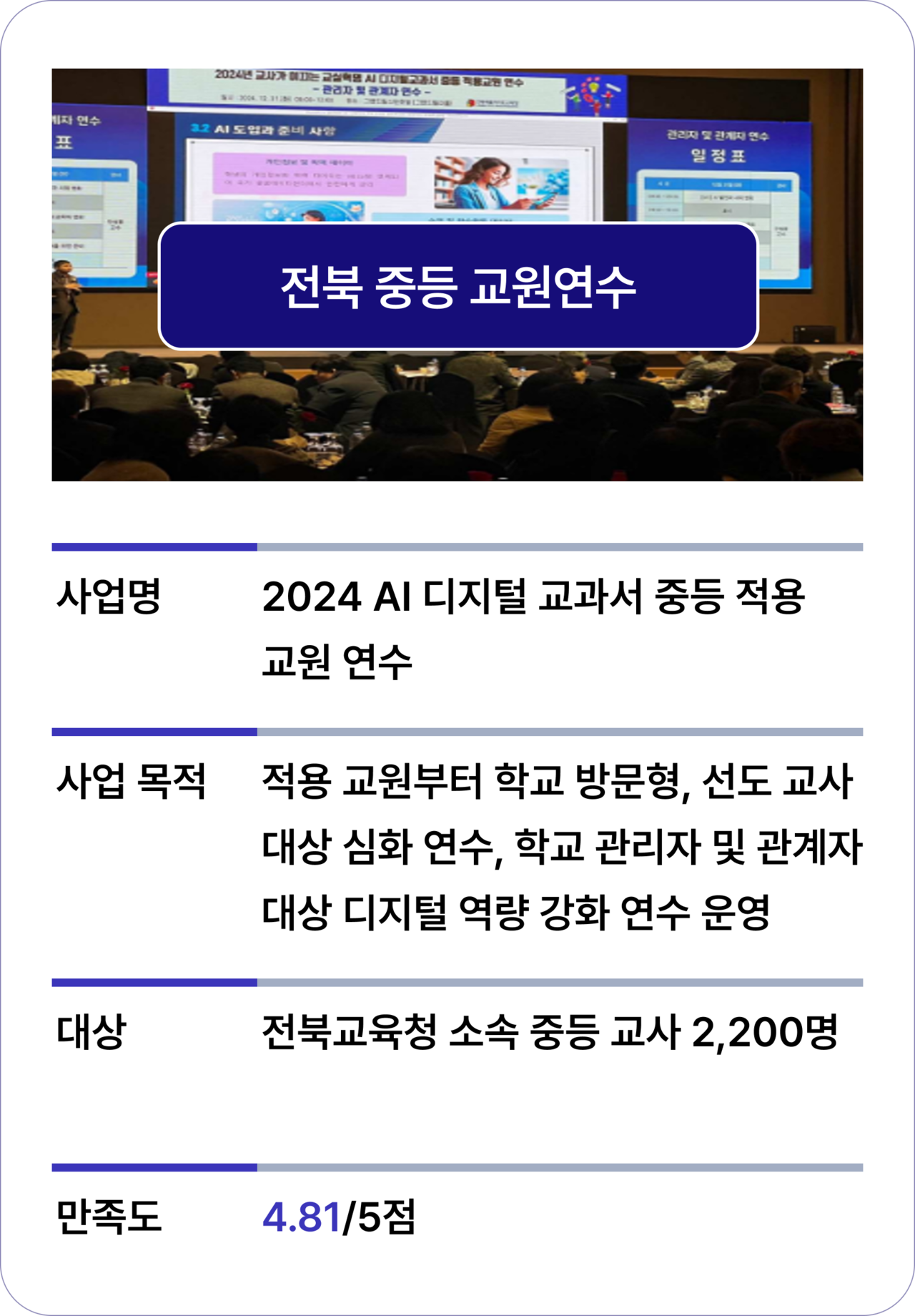 AI 리터러시 중심의 AI 디지털 역량 강화 교원 연수가 필요합니다.
