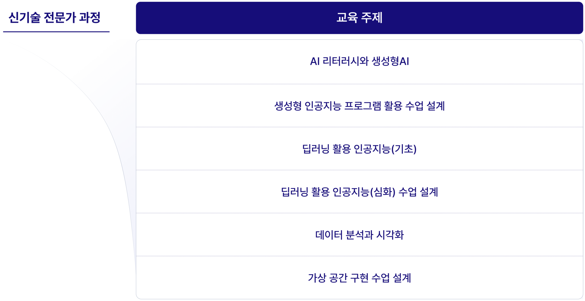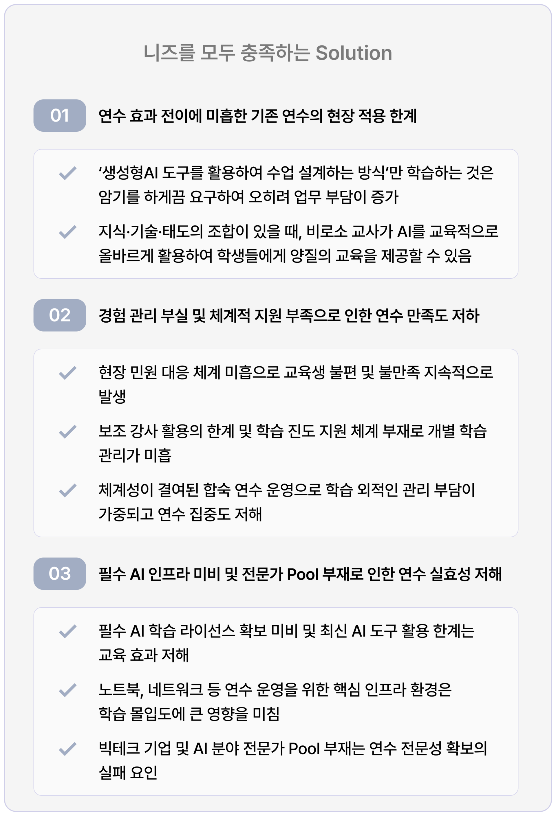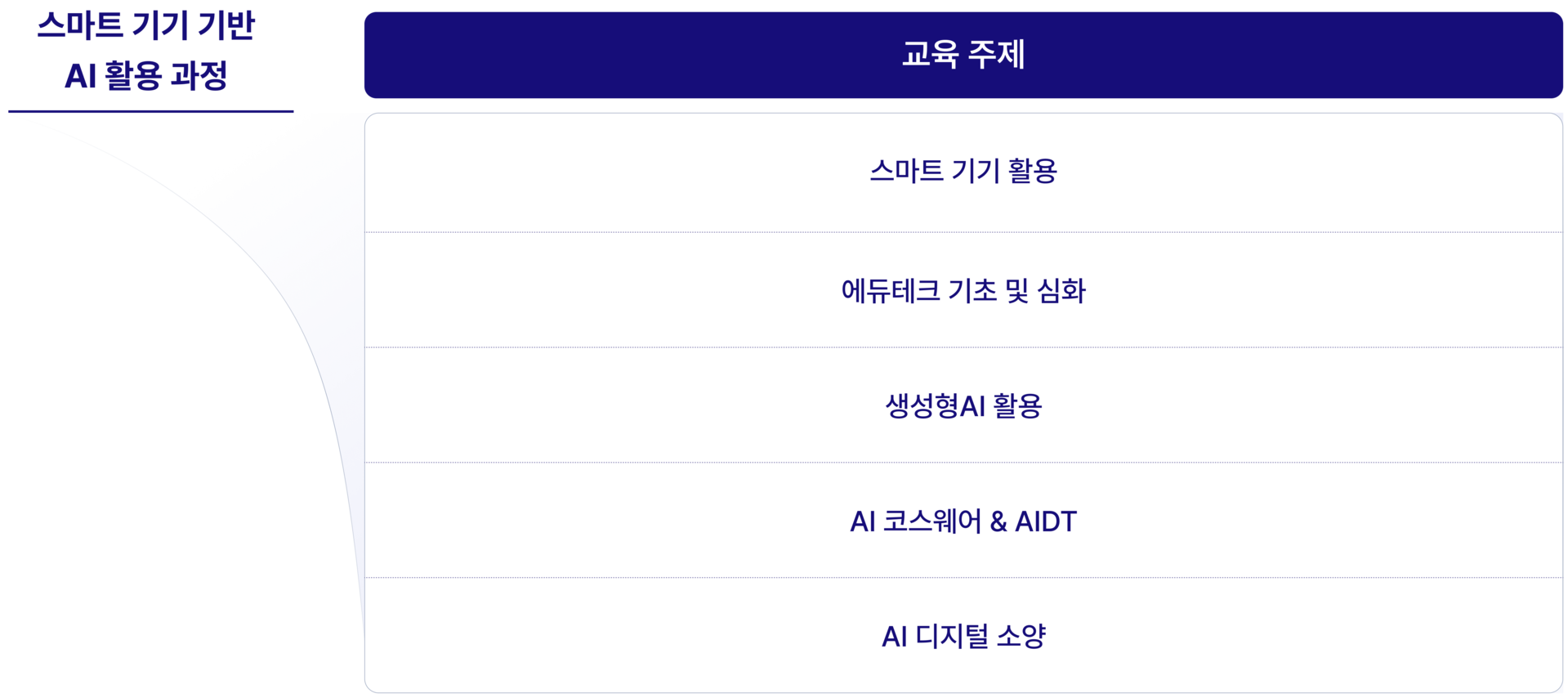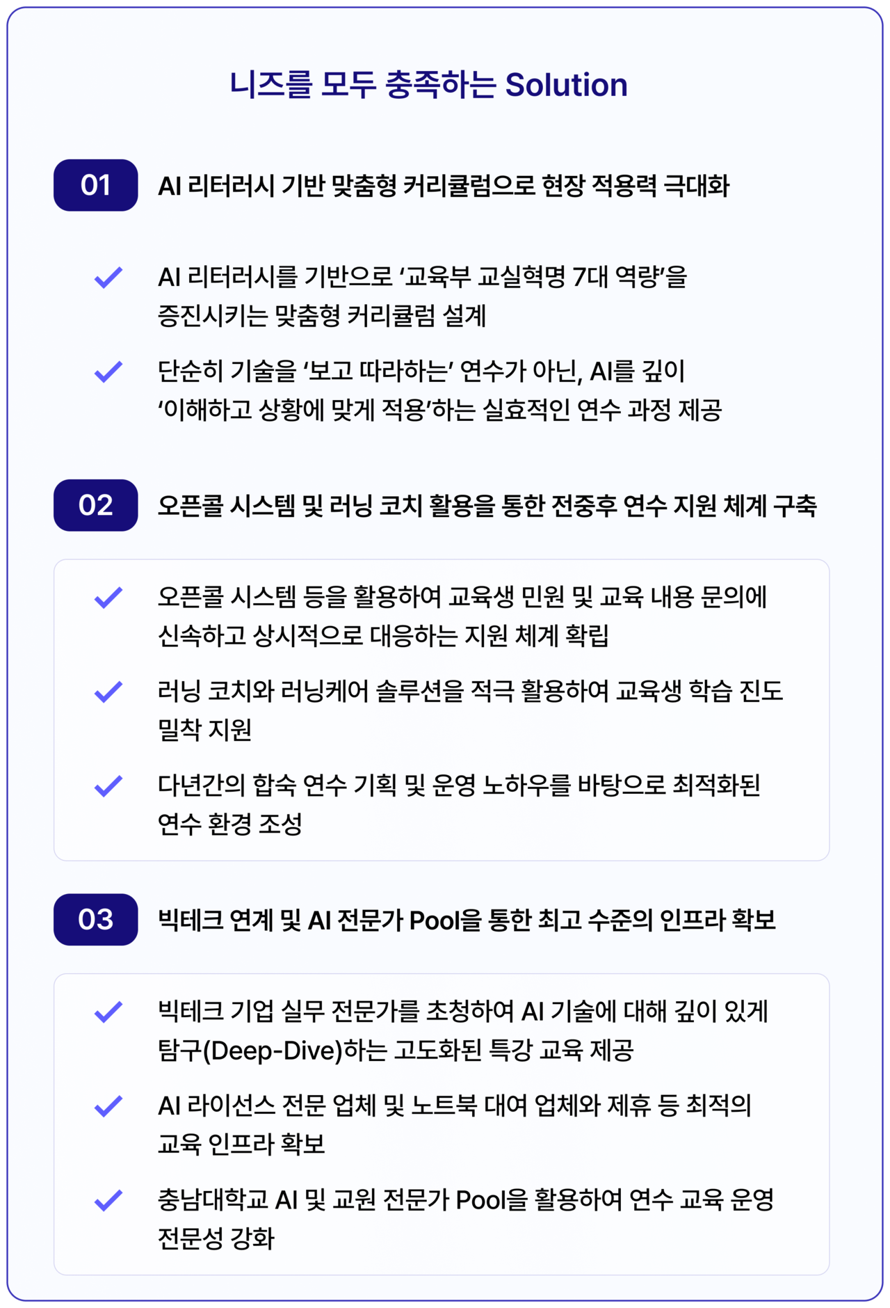 교육 커리큘럼과 AI 리터러시의 유기적 연계, 원활한 교육과 실습 운영, 전문적이고 체계적인 AI 운영 서비스 체계를