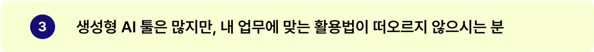 ❸ | 생성형 AI 툴은 많지만, 내 업무에 맞는 활용법이 떠오르지 않으시는 분 |