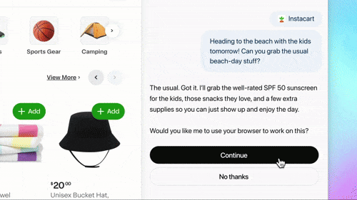 ©ํ๋ชฉ์ ๊ฒ์ํ๊ณ ์ฅ๋ฐ๊ตฌ๋์ ๋ด๊ธฐ๊น์ง ์๋์ผ๋ก ์ํํ๋ ์์ด์ ํธ ๋ชจ๋ / OpenAI ์์ ํ๋ฉด ์บก์ฒ