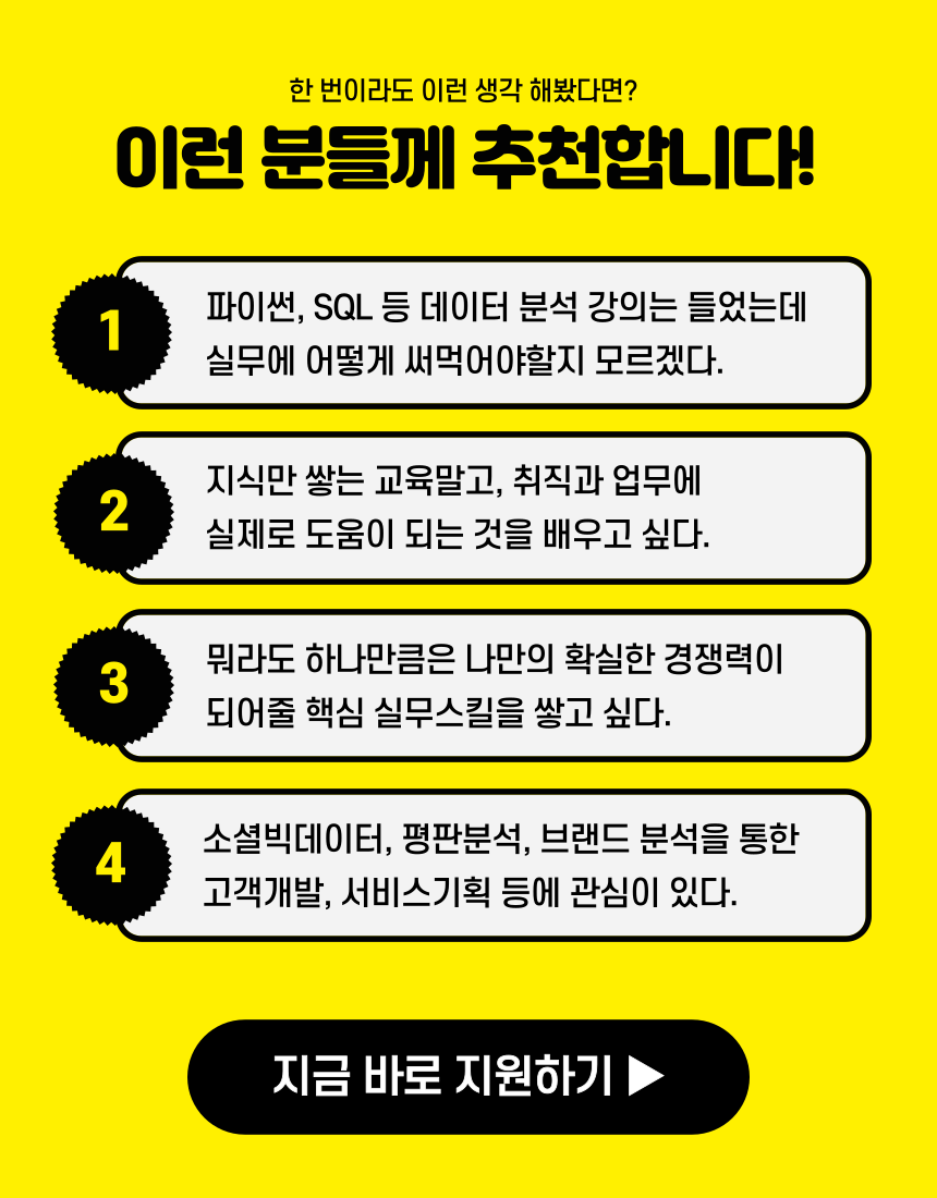 ์ด๋ ค์ด ์ด๋ก ๋ง๊ณ ! ํต์ฌ ์คํฌ๋ถํฐ ์๋ฒฝํ๊ฒ ์ ๋ณตํ๋ ์์ ๋น ๋ฐ์ดํฐ ๋ถ์์บ ํ์ ๋๋ค.